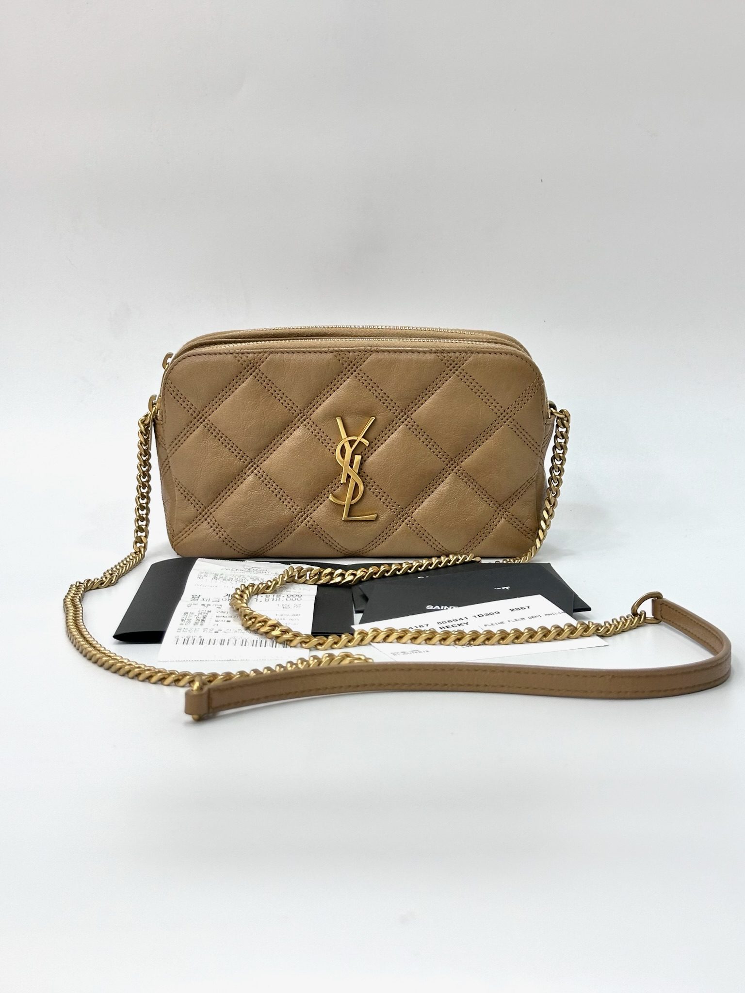 Brand: Saint Laurent Material: Leather Color: Beige Hardware: Gold Code/Serial No.: GUE608941-0920 Condition: Excellent Condition Inclusions: Cards, Receipt